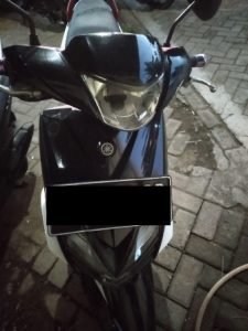 Barang bukti berupa 1 ( satu ) unit sepeda motor Yamaha Mio warna merah yang digunakan pelaku saat beraksi dan pelaku diamankan menuju Polsek Tamalate.