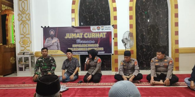 Kapolsek Mariso Polrestabes Makassar Akp Rizkiana, SH., MH. Bersama TRIPIKA Kec. Mariso didepan warga menggelar Jumat Curhat di Mesjid Tauhid Mattoanging.