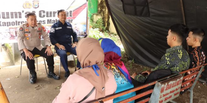 MAKASSAR – Polrestabes Makassar melaksanakan kegiatan rutin Jum’at Curhat, mendengar masukan, keritikan dan saran dari warga, Kegiatan dilaksanakan Kasi Humas Polrestabes Makassar Kompol Lando KS, Jum’at (14/04/2023).