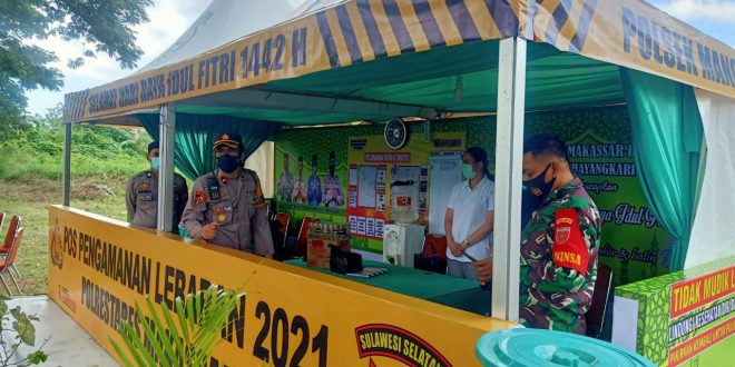 Makassar, Guna memastikan kesiapan Personil dan kelengkapan di Pos Pengamanan Operasi Ketupat 2021 di jalan Antang raya, Kabagops Polrestabes Makassar Komisaris Polisi Nugraha,Sik, Mh langsung mengujungi Pos Pengamanan, Rabu 12 Mei 2021. Dalam Pos pengaman terdiri dari Personil Polri, TNI dan Dinas Kesehatan .