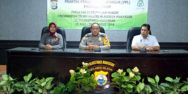Turut hadir dalam kegiatan tersebut Kasubbagkum Polrestabes Makassar AKP Aprianti, SE, MH dan dosen pembimbing lapangan Bapak Ansar Silele, SH, MH serta puluhan mahasiswa fakultas Hukum Universitas Islam Negeri Makassar .