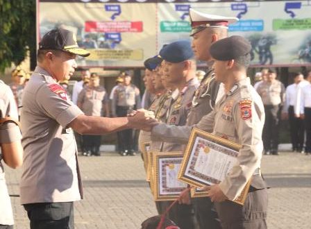 Polrestabesmakassar.com – Kapolda Sulsel Irjen Pol Drs Umar Septono memimpin apel pagi sekaligus memberikan penghargaan kepada anggotanya yang berprestasi. bertempat di Lapangan Apel Mapolda Sulsel, Senin (03/12) pada pukul 07.00 Wita.