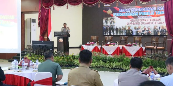 Rapat Koordinasi Daerah ini membahas Kesiapan Pelaksanaan Pengamanan Pemilu Tahun 2019 untuk mewujudkan keamanan di Provinsi Sulawesi Selatan sekaligus penyamaan persepsi.