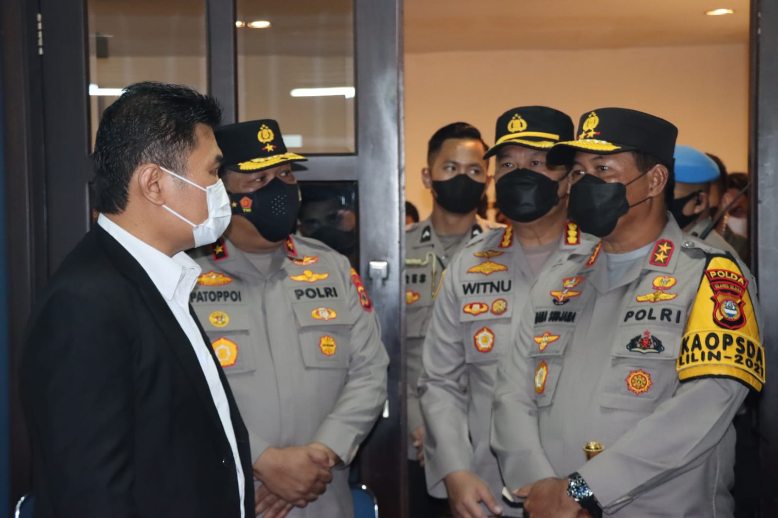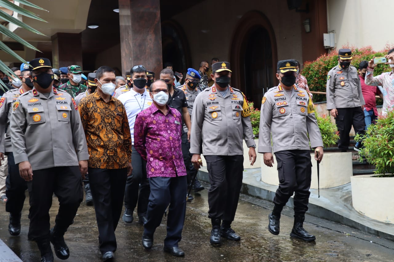 Makassar – Memastikan perayaan ibadah Natal berlangsung aman kondusif Kapolda Sulsel Irjen Pol Drs. Nana Sudjana AS bersama PJU Polda Sulsel dan Kapolrestabes Makassar Kombes Pol Witnu Urip Laksana S.IK, MM, MAP meninjau pengamanan ibadah di gereja di Kota Makassar, Sabtu (25/12/2021).