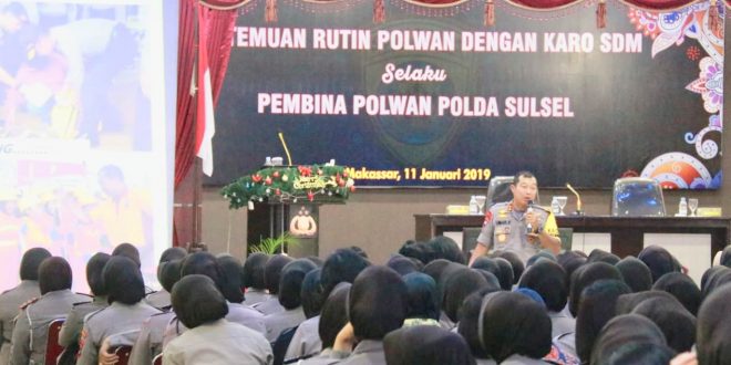 Polrestabesmakassar.com – Kapolda Sulsel Irjen Pol Drs. Umar Septono memberikan arahan kepada Polwan dalam Pertemuan Rutin Polwan Jajaran Polda Sulsel yang di seleggarakan di Auditorium Paramartha SPN Batua di Jln. Urip Sumohardjo Kota Makassar, Jumat (11/01) pada pukul 16.00 Wita.