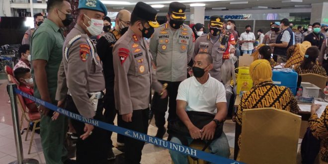 Makassar – Kapolda Sulsel Irjen. Pol. Drs. H. Merdisyam, M.Si., meninjau langsung kegiatan vaksinasi 10.000 yang diadakan oleh grup IDI Makassar, Fajar Grup, Tribun, Kalla Grup, Ustad Das’ad latif dan Polri.