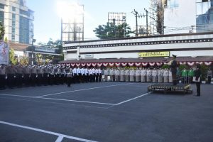 Upacara dipimpin oleh Kapolrestabes Makassar Kombes Pol Irwan anwar ,SIK, SH, MH dengan komandan ppacara AKP Hartati, S.Sos dan petugas pengibar Bendera Merah Putih dari personil Polwan Polrestabes Makassar dan diikuti oleh Wakapolrestabes Makassar AKBP C.F Hotman Sirait, SIK, SH, para Kabag, Kasat bersama personil dan PNS Polrestabes Makassar serta Ibu Bhayangkari dan mahasiswa KKPH dari UMI.