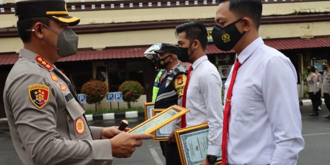“Baru saja kita saksiakan rekan-rekan kita yang mendapatkan penghargaan dari pimpinan. Saya berharap semuanya mendapat piagam penghargaan, dengan catatan menunjukkan kinerja dan dedikasinya yang terbaik,” ucap Kombes Pol Budhi Haryanto di depan para anggotanya.