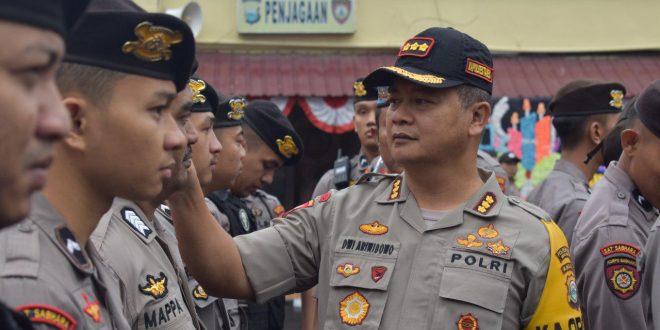 Polrestabesmakassar.com – Usai apel pagi personil di Mako Polrestabes Makassar, Kapolrestabes Makassar Kombes Pol Wahyu Dwi Ariwibowo, SIK mengecek kesiapan dan sikap tanpan anggotanya, Selasa (2/7/2019).