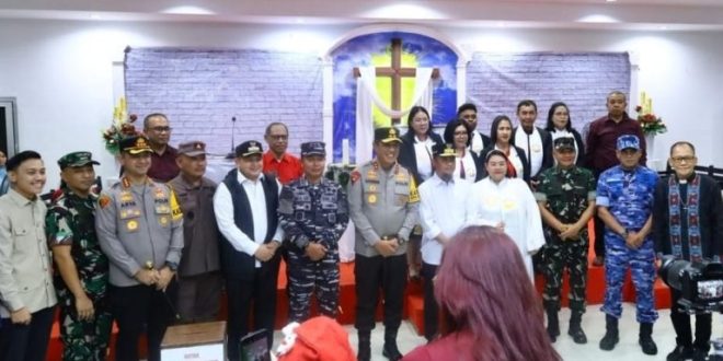 Makassar – Guna memastikan situasi keamanan dan ketertiban masyarakat (kamtibmas) tetap kondusif pada perayaan Malam Natal Tahun 2025, Kapolrestabes Makassar Kombes Pol. Arya Perdana, S.H., S.I.K., M.Si bersama Kapolda Sulawesi Selatan Irjen Pol. Djuhandhani Rahardjo Puro, S.H., M.H., melaksanakan pemantauan langsung ke gereja di Kota Makassar, Rabu (24/12/2025).