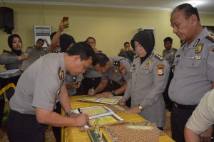 Selanjutnya penyerahan DIPA (Daftar Isian Pelaksanaan Anggaran) oleh Kapolrestabes Makassar yang diterima oleh Subsatker dan unit kerja penerima Dipa yang diwakili oleh Kabag, Kasat, Kasi dan Kapolsek jajaran Polrestabes Makassar dan dilanjutkan dengan penandatanganan Pakta Integritas.