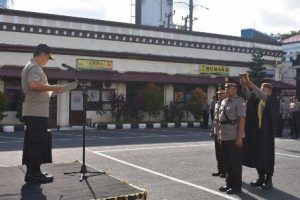 Polrestabesmakassar.com- Kapolrestabes Makassar Kombes Pol Wahyu Dwi Ariwibowo, S.Ik memimpin upacara serah terima jabatan Ka Siwas (Seksi Pengawas) Polrestabes Makassar di lapangan apel Polrestabes Makassar, Kamis (31/01/19).