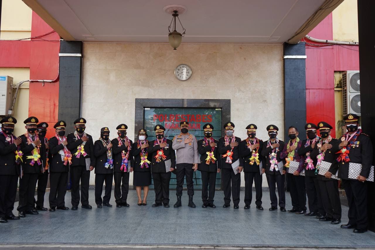 Polrestabesmakassar.com- Kapolrestabes Makassar Kombes Pol. Witnu Urip Laksana, SIK menjadi inspektur upacara pada pelaksanaan pelepasan purna bhakti personil Polrestabes Makassar sebanyak 44 orang wisudawan periode juli 2020 s/d Juni 2021.