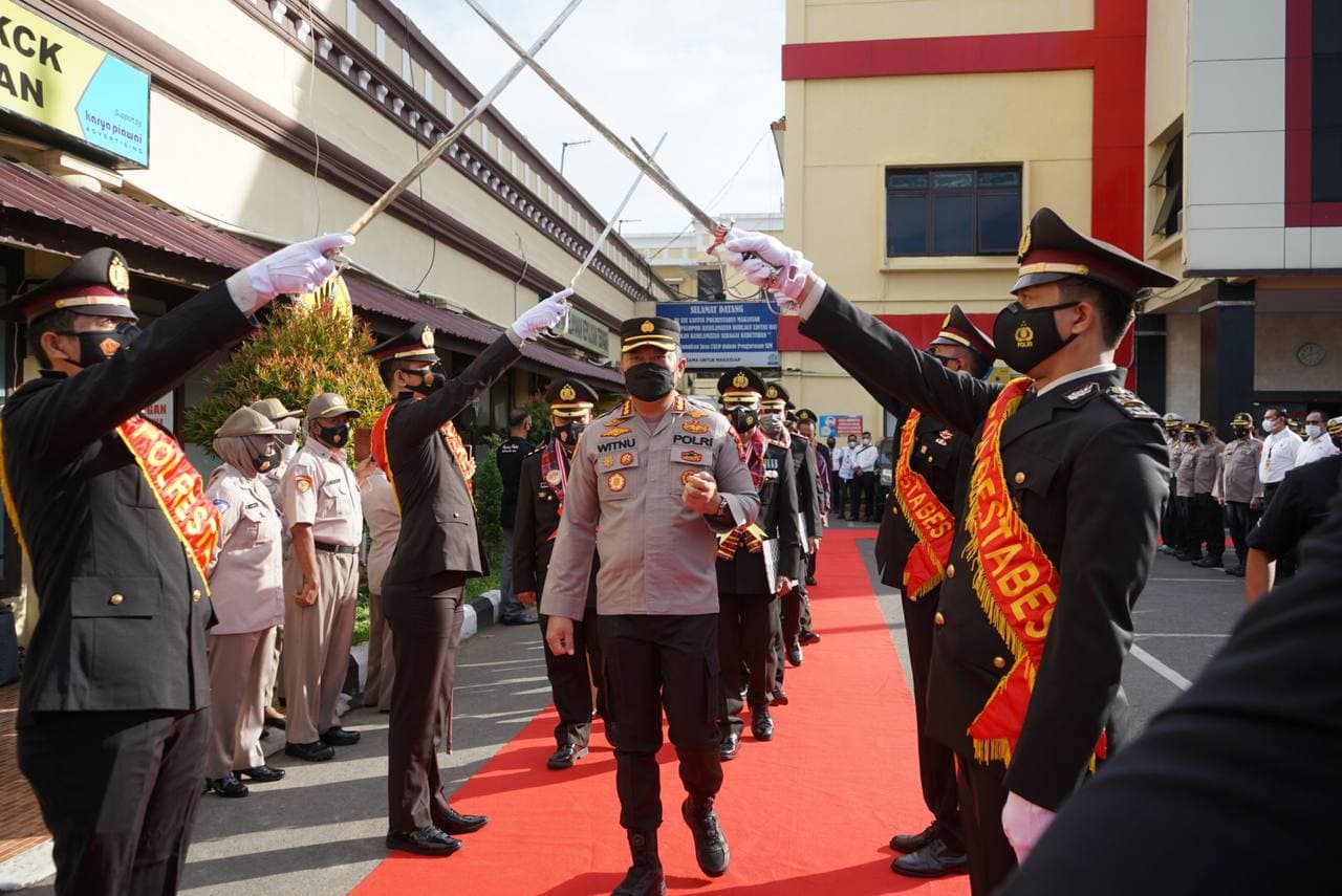 Sebelum Kapolrestabes Makassar menyampaikan amanat mari kita sama sama menundukkan kepala memanjatkan doa, sehubungan telah berpulangnya wafatnya rekan kita Kompol Aris Sumartono Kasium Polrestabes Makassar yang wafat pada Minggu (27/06/2021).