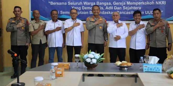 MAKASSAR – Kepala Kepolisian Resort Kota Besar Makassar Kombes Pol Mokhamad Ngajib, SIK, MH, bersilaturahmi bersama PGI ( Persekutuan Gereja Indonesia) Wilayah Sulselbar. Bertempat di Kantor PGI Sulselbar Jalan Racing Center Kec. Panakkukang Kota Makassar, Selasa (30/05/2023).