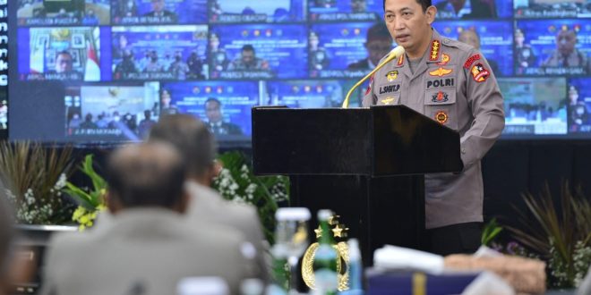 Jakarta – Kapolri Jenderal Listyo Sigit Prabowo membuka Rapat Kerja Teknis (Rakernis) gabungan Divisi Hukum (Divkum) Polri, Divisi Humas Polri, Divisi Hubinter Polri dan Divisi Teknologi Informasi dan Komunikasi (Div TIK) Polri, di Gedung Rupatama, Jakarta Selatan, Kamis (3/6/2021).
