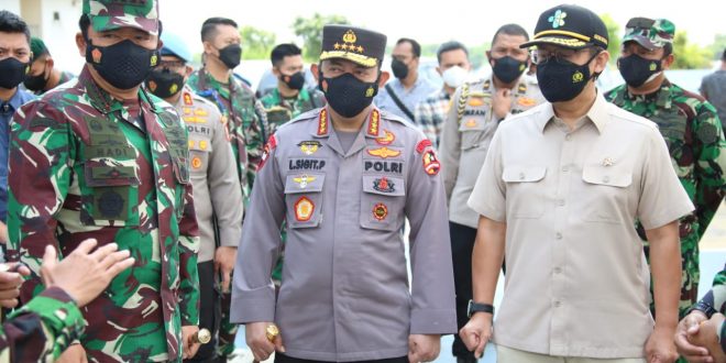 JAKARTA- Panglima TNI Marsekal Hadi Tjahjanto bersama Kapolri Jenderal Listyo Sigit Prabowo dan Menteri Kesehatan Budi Gunadi Sadikin meninjau tempat isolasi pasien COVID-19 di Rusun Nagrak Cilincing dan pos PPKM Mikro di Semper Barat hari ini, Minggu, 27 Juni 2021.