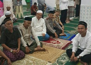Setelah melaksanakan sholat magrib bersama, kapolsek bersilaturahmi dengan tokoh agama dan warga sekitar jalan pongtiku.