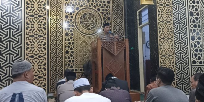 Makassar. Kapolsek Makassar Polrestabes Makassar Akp Andi Aris Abubakar, SH, MH bersama jajarannya melaksanakan safari Jumat di mesjid Al Hijrah jalan Gunung Latimojong Lrg. 2 Kelurahan Lariangbanggi Kecamatan Makassar. Jumat (29/07/2022)