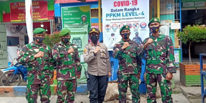 Makassar. Kapolsek Makassar Polrestabes Makassar Kompol Andriyani Lilikay mengunjungi posko penanganan covid19 dipasar Maricaya jalan Veteran Selatan Kelurahan Maricaya Kecamatan Makassar. Jumat (06/08/2021)