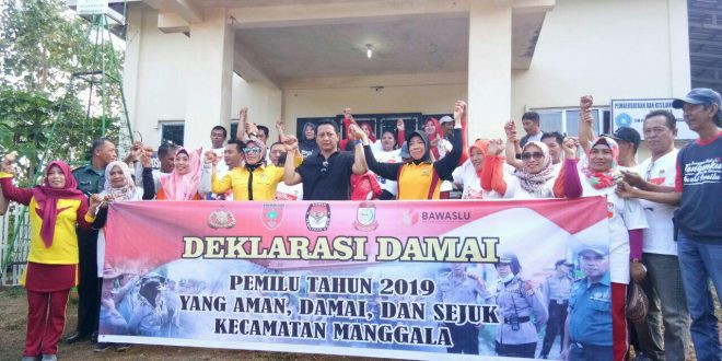 Polrestabesmakassar.com – Kapolsek Manggala Kompol Hasniati turut hadir dalam kegiatan Deklarasi Damai Pemilu Tahun 2019 yang Aman, Damai dan Sejuk yang dilaksanakan di Lapangan Kantor PKK Aula Kecamatan Manggala, Jumat (2/10/2018).
