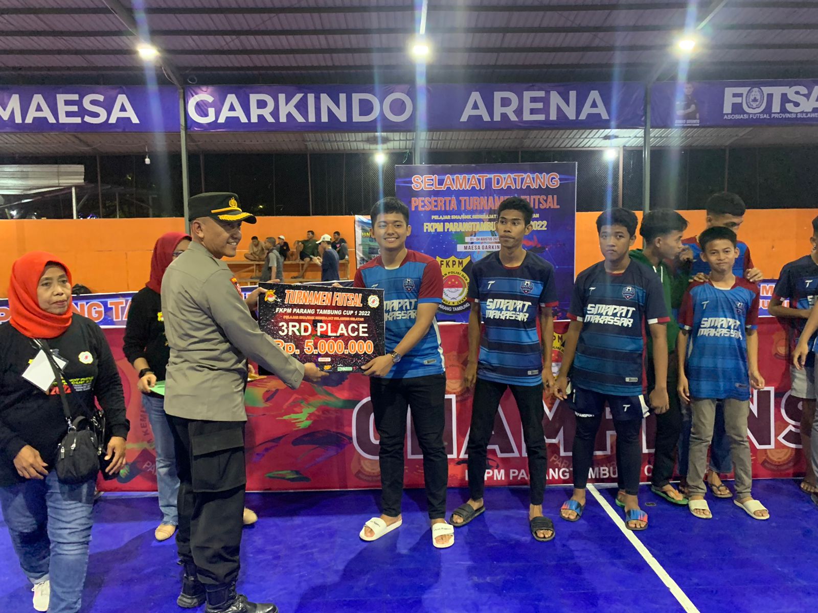 Makassar – Kapolsek Tamalate , Kompol Irwan Tahir SE.M.si menutup pertandingan kejuaraan pertandingan Futsal FKPM Cup 1 Kel Parangtambung kecamatann Tamalate Kota Makassar Kamis (04/08/2022).malam