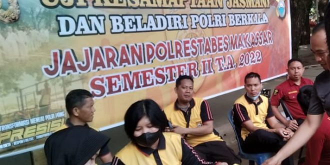 Pagi ini bertempat di Lapangan Karebosi Jl. Jend. Sudirman – A. Yani Kecamatan Ujung Pandang Kota Makassar, personel Polri dari Polrestabes Makassar dan Polsek jajaran memenuhi lapangan untuk mengikuti Uji Kesamaptaan Jasmani dan Beladiri semester II tahun 2022. Selasa, (30/8/22).