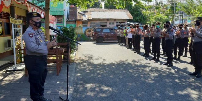 Makassar-Jajaran Polrestsbes Makassar dipimpin oleh Kasat Sabhara Polrestabes Makassar Kompol Wahyu Basuki, S.ik melaksanakan apel konsilidasi Operasi Mantap Praja 2020 (OMP 2020) di mapolsek Makassar jalan Kerung-kerung Makassar. Senin (28/09/2020)