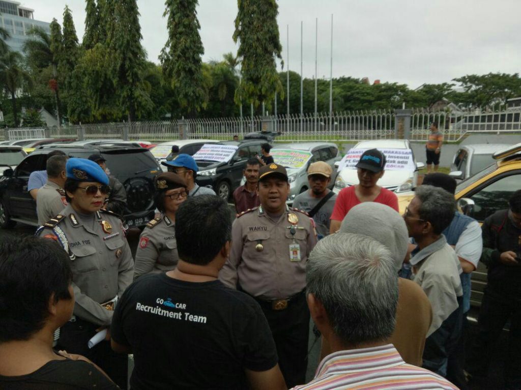 Kegiatan dikendalikan langsung oleh Kapolsek Ujung Pandang. “Mengingat jumlah mobil yang ditumpangi oleh massa aksi, sekitar 200 unit, sebelumnya mereka kami imbau dan arahkan, untuk tertib saat berorasi dan tertib saat memarkir mobilnya, dengan tidak menutup seluruh bahu jalan, dan yang paling utama, tidak melakukan sweeping terhadap Moda Transportasi Online lainnya maupun angkutan umum yang sedang beroperasi”, pungkas Wahyu.