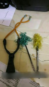 “Pada saat anggota memeriksa lelaki MJ tiba-tiba ia membuang sesuatu di dekat motor yang digunakannya, setelah diperiksa oleh anggota ditemukan sebuah ketapel dan 2 buah anak panak atau busur”, tambah Iptu Usman.