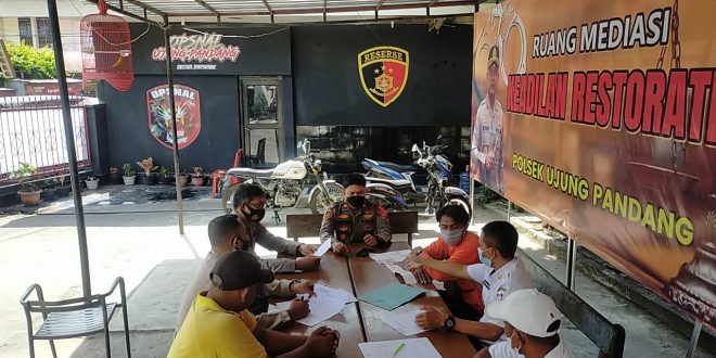 Makassar – Kapolsek Ujung Pandang Polrestabes Makassar bersama Bhabinkamtibmasnya yang saat ini ditugaskan di Kelurahan Lae Lae tepatnya di Pulau Lae Lae Kota Makassar, melakukan ‘Problem Solving’ untuk selesaikan kisruh tanah dan bangunan warga Pulau Lae lae bertempat di ‘Gerai Mediasi / Keadilan Restoratif’ Mapolsek Ujung Pandang Jl Sultan Hasanuddin No. 3 Kota Makassar, (27/4/22).