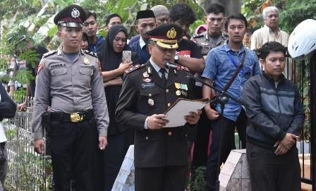Upacara pemakaman dipimpin langsung Kabag Ops Polrestabes Makassar Kompol Dwi Bachtiar R, SIK, sedangkan peserta upacara pejabat Polrestabes Makassar, personil Sabhara dan staf jajaran Polrestabes Makassar. Bertempat di pemakaman umum Dato Ripagentungan Kec. Somba Opu Kab.Gowa, Rabu (20/09/2018).