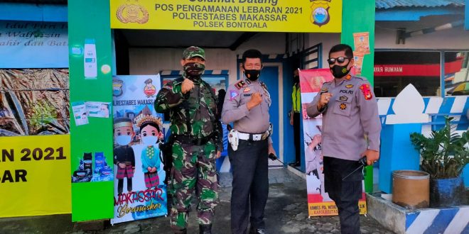 Makassar – Kapolsek Bontoala Polrestabes Makassar AKP Syamsuardi, S.Sos.,MH melakukan kontrol pos pengamanan operasi Ketupat 2021 yang terletak di jalan Mesjid Raya Depan Pasar Terong Kota Makassar. Sabtu (08/05)21) pagi.