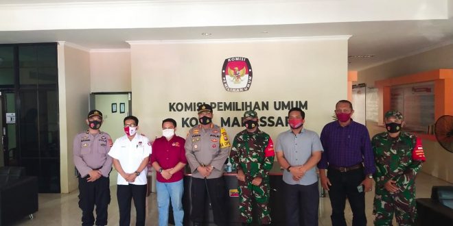 Makassar – Kunjungan Kapolrestabes Makassar Kombespol Yudhiawan dan Dandim Tabes Makassar 1408 Kolonel Cav Dwi Irbaya di Kpu Kota Makassar Jl.Perumnas Raya Antang no.2 A kelurahan Manggala,Selasa (15/09/2020).