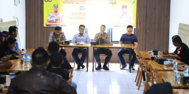 Makassar. Kapolsek Makassar Polrestabes Makassar Kompol DR. Andi Aris Abu Bakar, SH, MH, bersama jajarannya, jumat pagi melaksanakan Jumat Curhat dalam rangka mendengar langsung saran dan kritik warga masyarakat terkait pelayanan Polri.