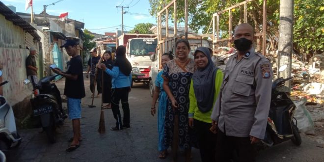 Bhabinkamtibmas Kelurahan Rappokalling Kec.Tallo kota Makassar, Aiptu Muh .Yunus melakukan kerja bakti bersama-sama warga masyarakat.
