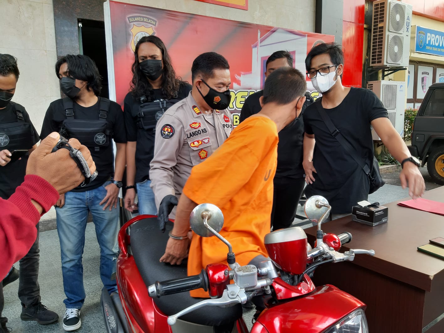 “Hasil analisa CCTV di TKP kami bisa mengungkap pelaku yang menggunakan sepeda motor warna merah. Penangkapan pada hari Sabtu di perumahan Villa Mutiara Kota Makassar,” ungkap Kasat Reskrim Polrestabes Makassar Kompol Jamal Fathur Rakhman saat konfrensi pers di Mako Polrsetabes Makassar, Senin (13/9/2021).