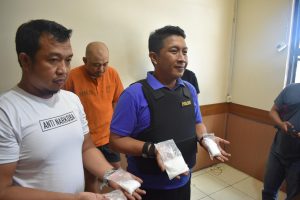 Kasat Narkoba Polrestabes Makassar Kompol Diari Astetika dalam konferensi pers mengatakan pada Jumat tanggal 08 Februari 2019 sekitar pukul 01.00 Wita bertempat di Hotel Golden Tulip Jalan Sultan Hasanuddin Kota Makassar Tim Elang berhasil meringkus lelaki AR (34) warga Jalan Baji Gau.