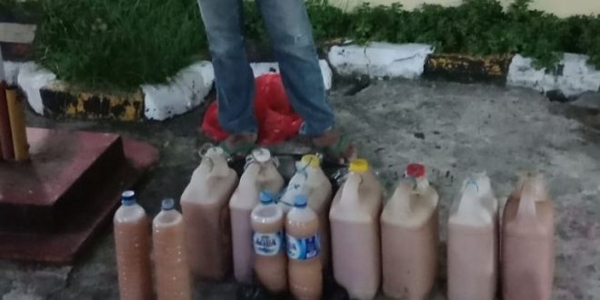 Kanit Reskrim Iptu H. Rahman mengatakan, Ballo dikumpulkan di daerah Galesong Utara Kab. Takalar dengan seharga Rp. 35.000 per lima liter kemudian dibawah ke Makassar.
