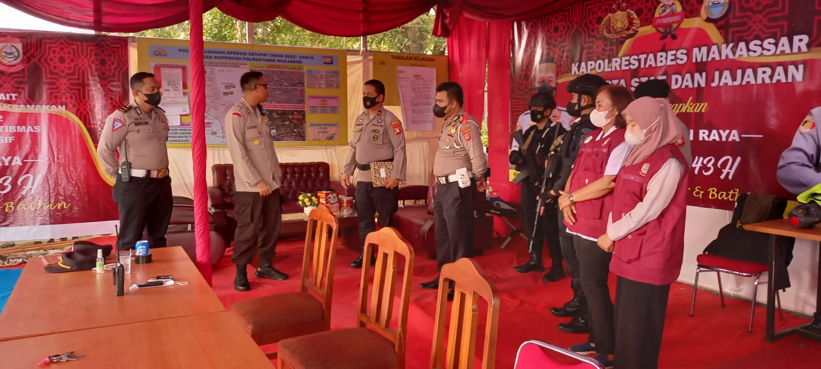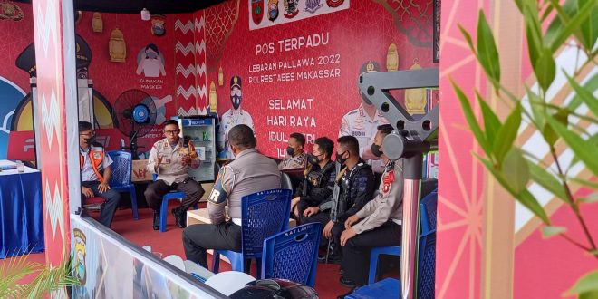 Makassar – Wakapolrestabes Makassar AKBP Budi Susanto, SIK mengecek Pos Terpadu, Pos Pelayanan dan Pos Pam operasi ketupat 2022 di wilayah hokum Polrestabes Makassar, Kamis (05/05/2022).