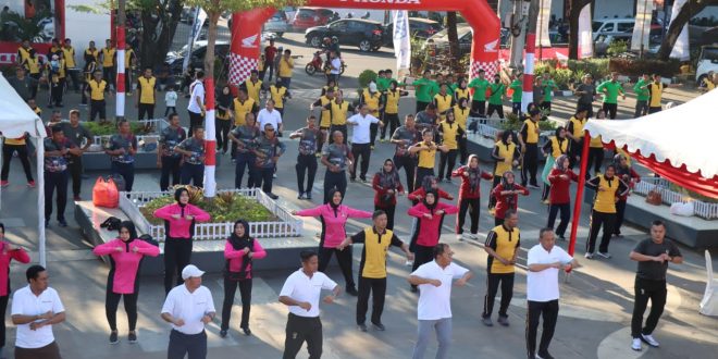 Olahraga bersama diawali dengan jalan santai lanjut senam dan pengundian doorprize dengan hadia utama satu paket Umroh dan berbagai hadia menarik lainnya.