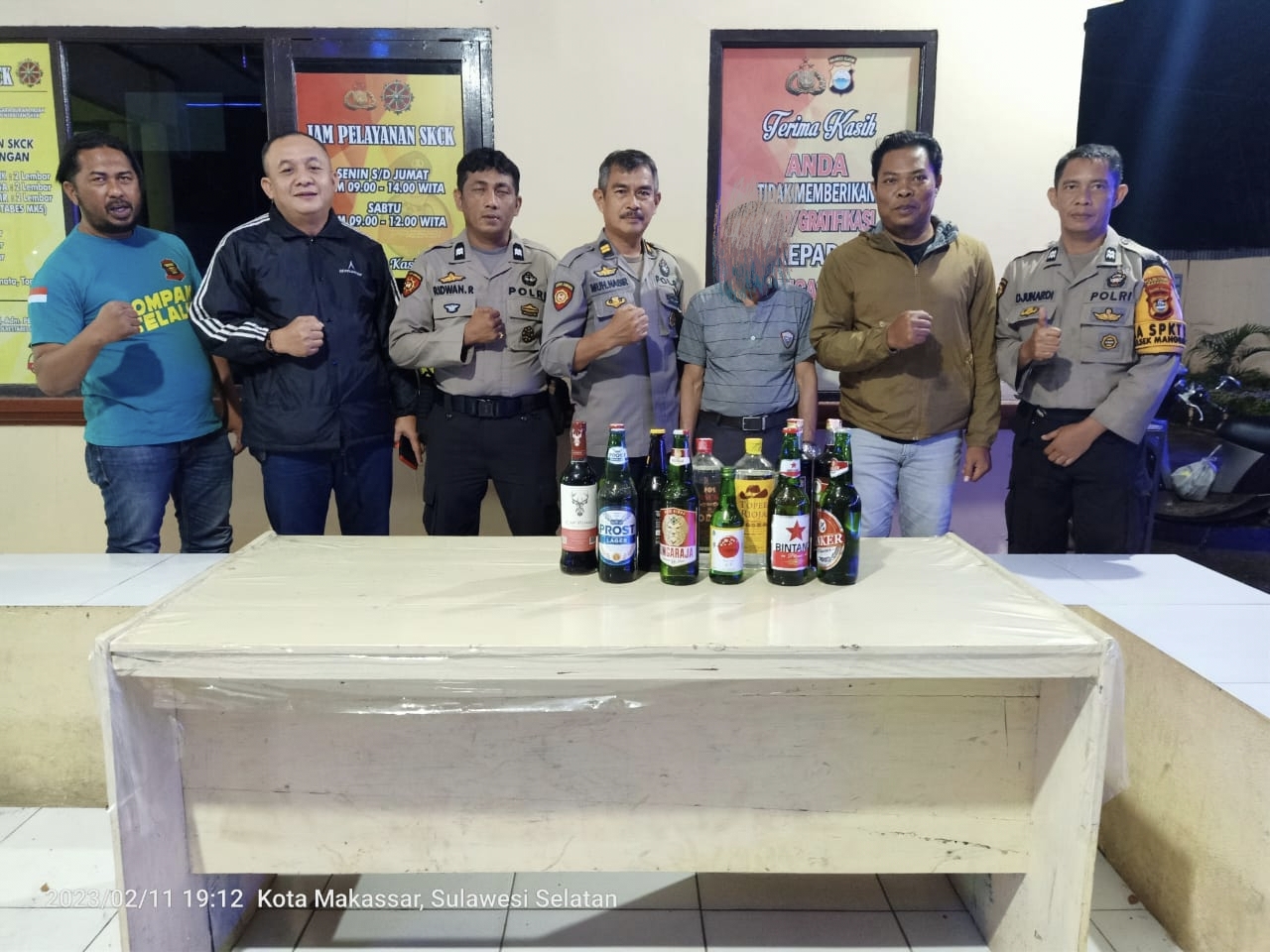 Makassar_Polsek Manggala, Operasi Cipta Kondisi, Polsek Manggala Gelar Razia Miras anggota mengamankan puluhan botol minuman keras berbagai merek. Sabtu, (11/02/23) Malam.