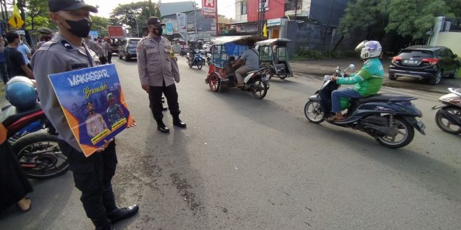 Melalui kegiatan operasi yustisi, personil polsek Makassar mengedukasi dan menghimbau warga masyarakat untuk taat dan disiplin menerapkan protokol kesehatan 5M.
