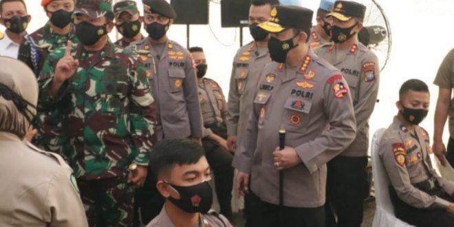 Sebanyak 1.000 Prajurit TNI – Polri di wilayah Provinsi Kepri menjalani Vaksin Covid – 19 pada, Kegiatan Vaksinasi dilaksanakan di Gedung Lancang Kuning Polda Kepri, yang disaksikan langsung oleh Panglima TNI Marsekal TNI Hadi Tjahjanto, SIP dan Kapolri Jenderal Polisi Drs. Listyo Sigit Prabowo, M.Si., disamping melakukan peninjauan Vaksinasi Panglima TNI dan Kapolri juga memberikan pengarahan kepada sejumlah pejabat TNI dan Polri diwilayah Provinsi Kepri. Jumat (5/3/2021).