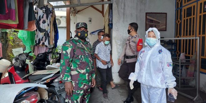 Makassar – Panit 1 Binmas Polsek Makassar Polrestabes Makassar Aiptu Nasruddin, sekitar pukul 11.15 wita, bersama Babinsa Kel. Maricaya Melakukan pendampingan Tim Detektor Kec. Makassar melaksanakan penyemprotan cairan disinfektan. Kamis (15/07/ 2021).
