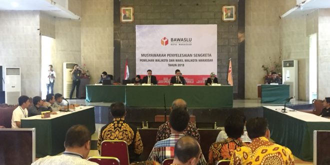 Diketahui hari ini Panwaslu Makassar menggelar sidang musyawarah penyelesaian sengketa pemilihan Walikota dan Wakil Walikota Makassar tahun 2018. Sabtu 18/2/18.