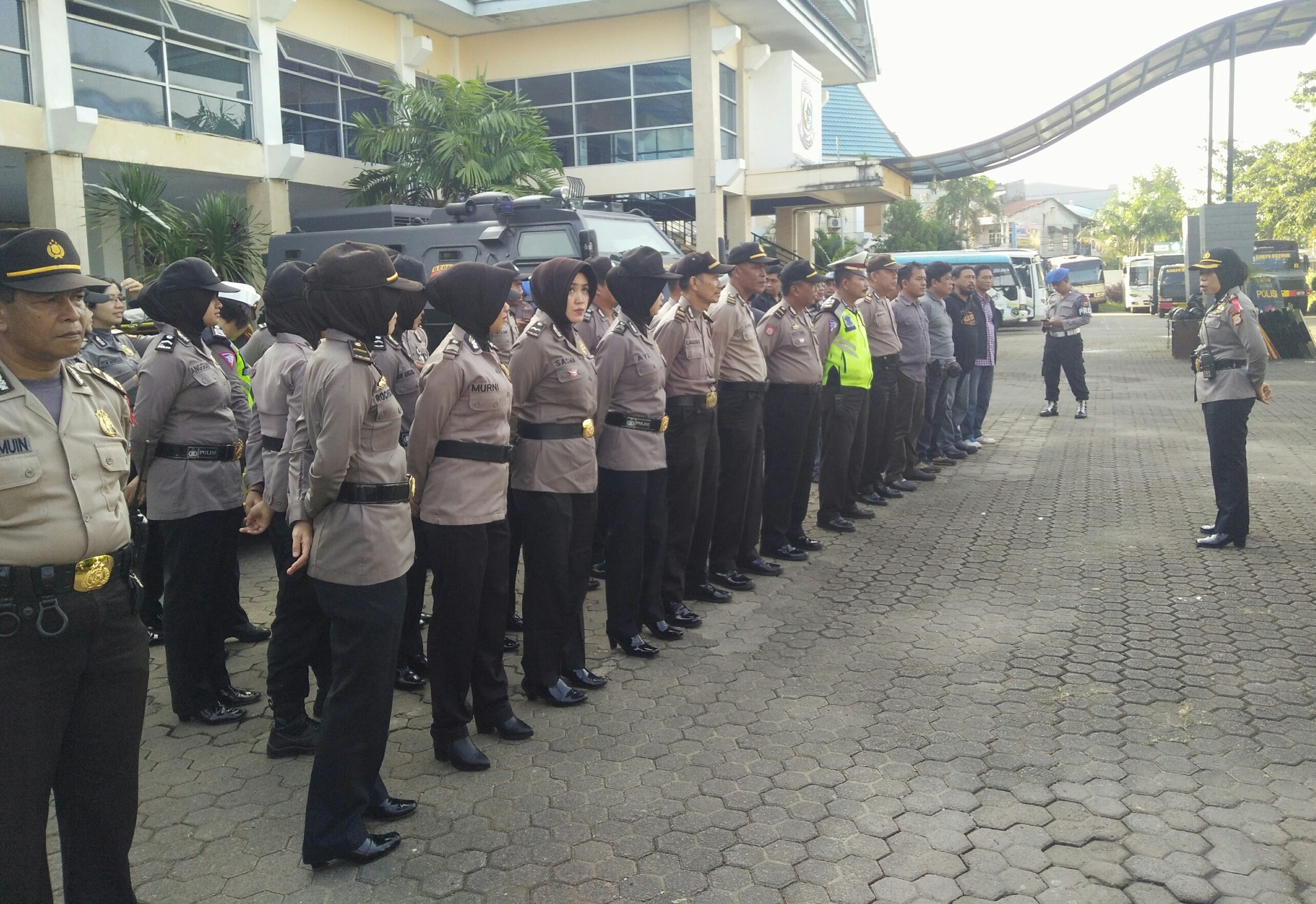 Sebelum melaksanakan pengamanan, para personil melaksanakan apel yang dipimpin oleh Kapolsek Manggala Kompol Hasniati.