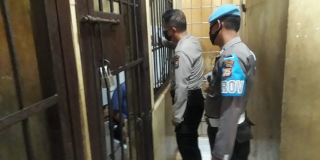 Seperti yang terlihat saat Ka SPKT Ipda Simon tangko dan piket Provos Aiptu Zainal melaksanakan pengecekan ruang Tahanan dan tahanan Mapolsek Tamalanrea, Senin (15/06/2020).