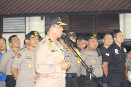Polrestabesmakassar.com – Wakapolda Sulsel Brigjen. Pol. Drs. Adnas, M.Si. memimpin Apel Pengecekan Kesiapan Personel Polrestabes Makassar. Bertempat di Lapangan apel Polrestabes Makassar, Kamis (06/12) pada pukul 20.00 Wita.