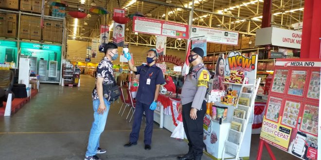 Makassar- Bhabinkamtibmas. Kel Pabaeng Baeng Brigpol Fitrah sambang ke pusat penjualan Grosir Lotte Mart jln sultan Alauddin Kel Pabaeng- Baeng Selasa (18/08/2020 )